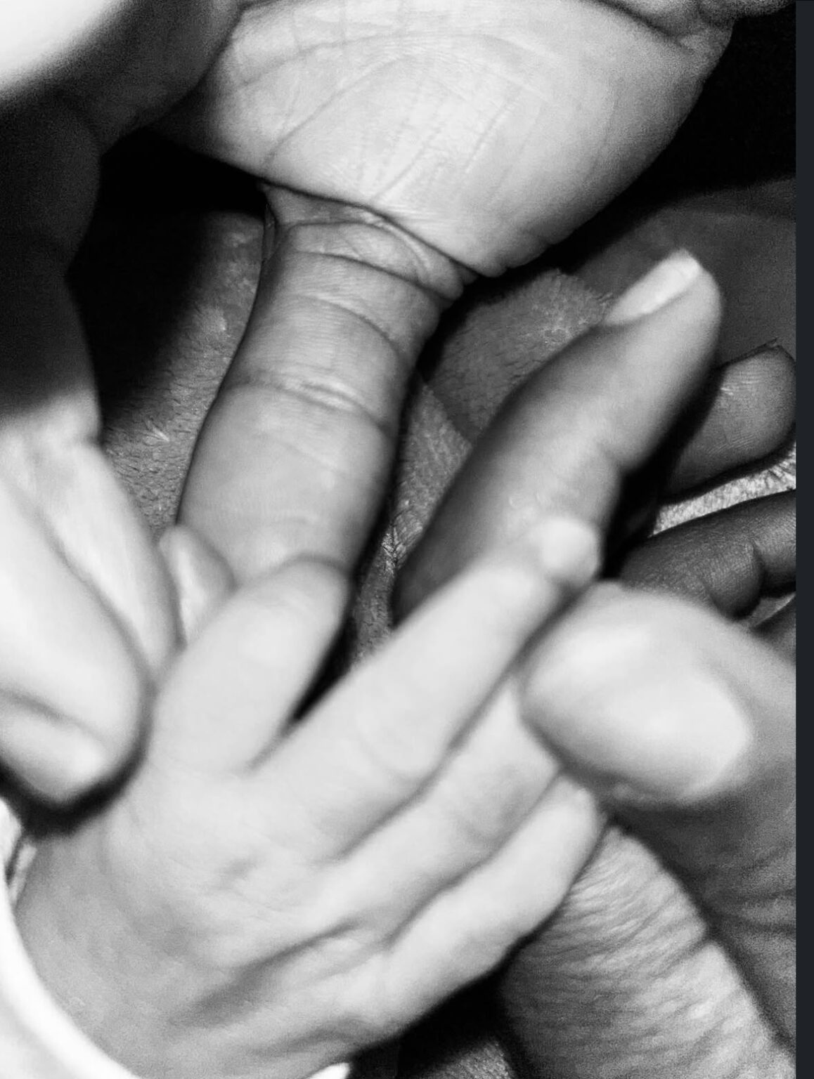 Tope Alabi’s daughter, Ayomiku Alabi, holding the new baby’s hand